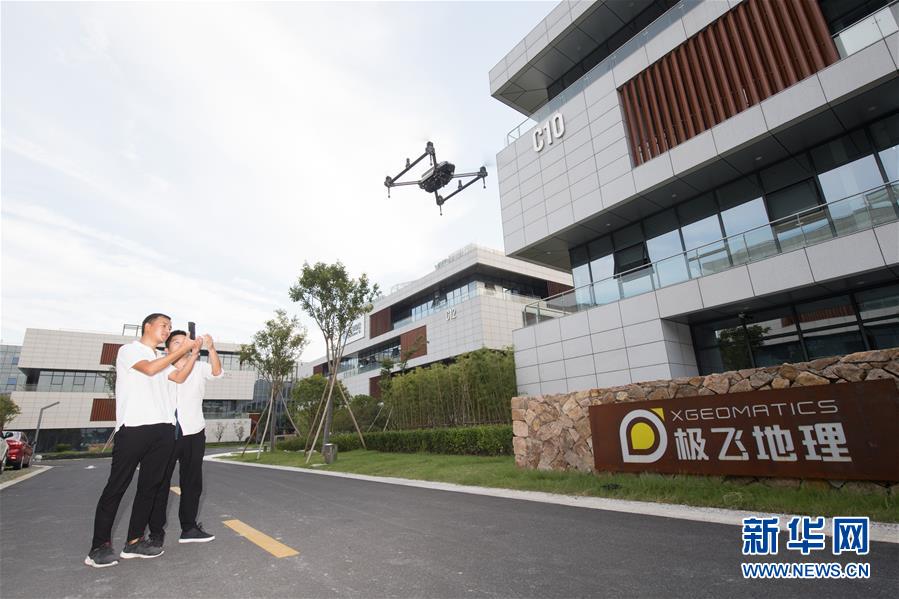 浙江极云地理信息科技有限公司员工演示一款智能测绘无人机(9月18日摄)。 新华社记者翁忻旸摄
