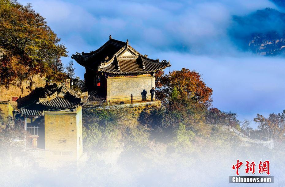 10月15日,“道源圣地”甘肃崆峒山现云海景观,气势磅礴的云山雾海倒映山峰、树木、古寺,构成一幅别样的秋色图。徐振华 摄