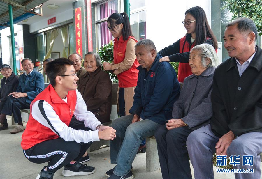 10月16日,青年志愿者们在敬老院陪老人们聊天。 在重阳节即将来临之际,浙江省余姚市大城小爱志愿服务中心的10多名青年志愿者来到余姚市临山镇敬老院,陪老人们聊天,还为行动不便的老人们洗脚、梳头。志愿者们还与老人们一对一结对,今后将定期过来看望老人,给老人们送温暖送关爱。 新华社记者 徐昱 摄