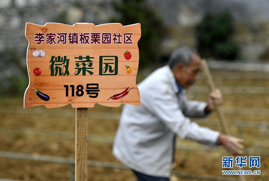 10月16日,在湖北省宣恩县李家河镇板栗园安置点,一位搬迁农民在“微菜园”劳作。 新华社发(宋文 摄)