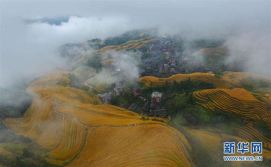 这是桂林龙胜龙脊梯田秋色(10月16日无人机拍摄)。新华社记者 黄孝邦 摄