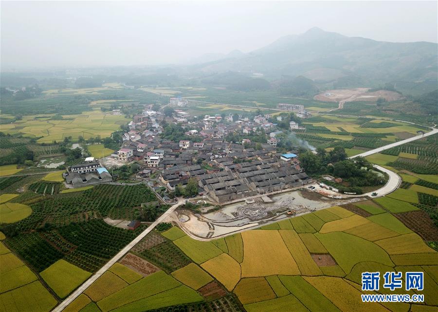 这是桂林永福县罗锦镇崇山村田园秋色(10月16日无人机拍摄)。新华社记者 周华 摄