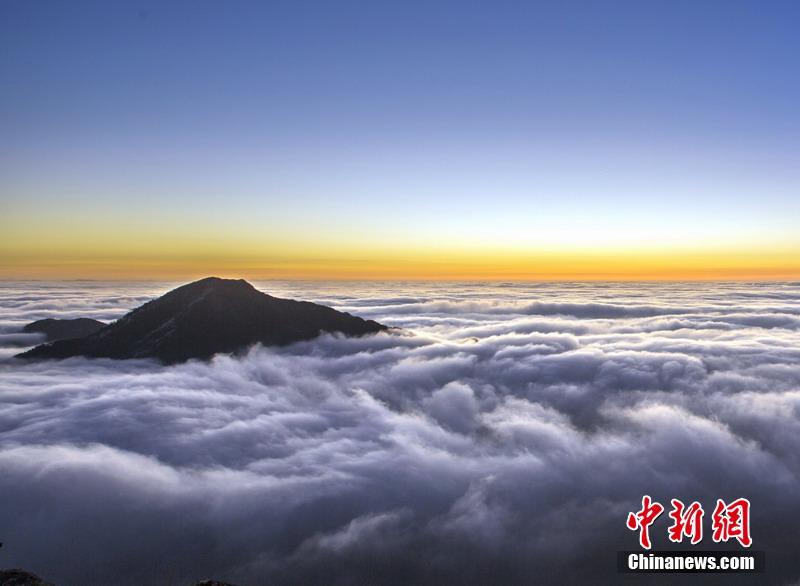 近日,由于天气变化,位于广东清远连山县的金子山出现云海美景。据悉,金子山海拔1417米,为广东第八高峰,因其高、险、峻、陡等特征被游客称为“南粤小华山”。程景伟 摄