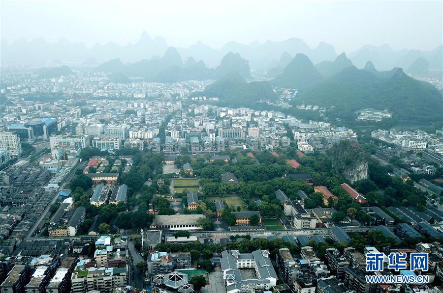 这是广西桂林市的城市景观(10月17日无人机拍摄)。 江作青罗带,山如碧玉簪。1100多年前,唐朝诗人韩愈写尽桂林山水之美。千百年来,桂林的青山绿水成为历朝历代文人骚客笔下的“人间仙境”。 保护好桂林山水,既是对祖国大好河山负责,更是对历史负责。近年来,尤其是党的十八大以来,桂林严守生态底线,以前所未有的力度截污治河,保护漓江最美山水,推动城乡统筹协调发展,不断扩大对外开放合作力度,努力在青山绿水里走出一条生态文明路。 新华社记者 周华 摄