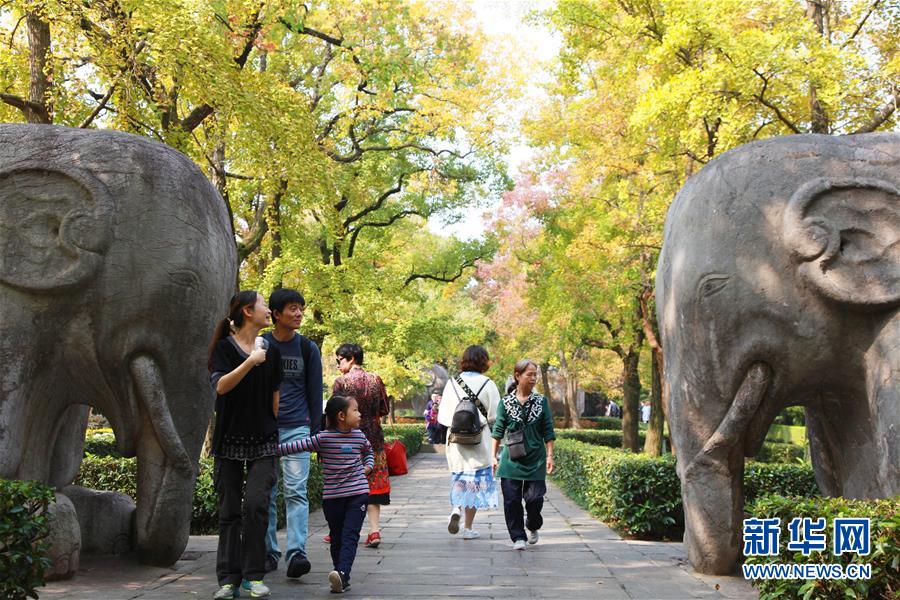 10月23日,游人在南京明孝陵神道上观赏秋景。当日是霜降节气,各地秋意渐浓,景色宜人。新华社发(刘建华 摄)