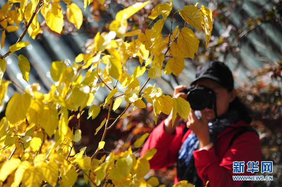 10月23日,游客在山东省烟台市南山公园拍摄秋景。当日是霜降节气,各地秋意渐浓,景色宜人。新华社发(初阳 摄)