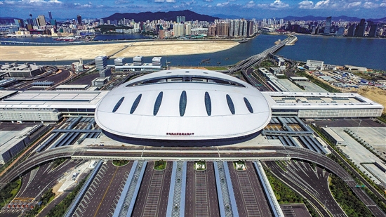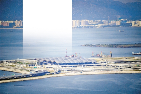 占地面积约70.33万平方米的港珠澳大桥珠海口岸形如一块巨型“如意”,“一地三通,如意牵手”。