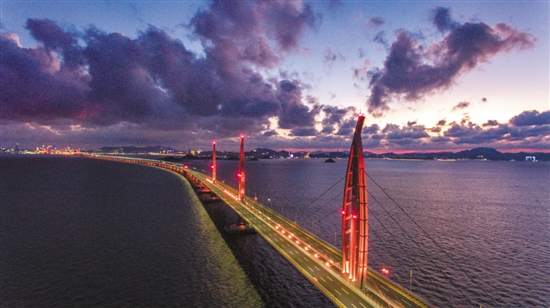从珠海情侣路远望,即可见两座“风帆”桥塔矗立在辽阔海面,蔚为壮观