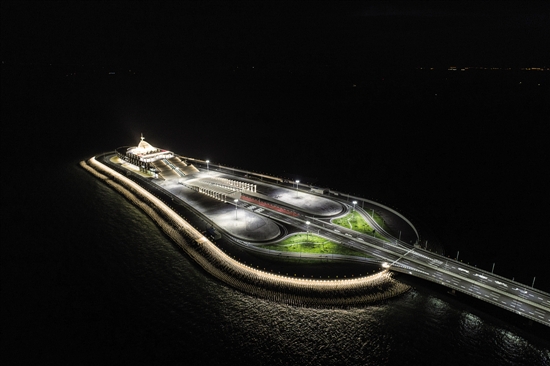 夜晚航拍的港珠澳大桥人工岛流光溢彩 新华社发