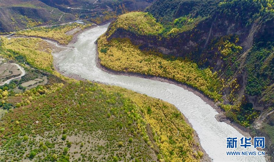 这是10月21日在西藏米林县派镇达林村拍摄的雅鲁藏布江(无人机拍摄)。