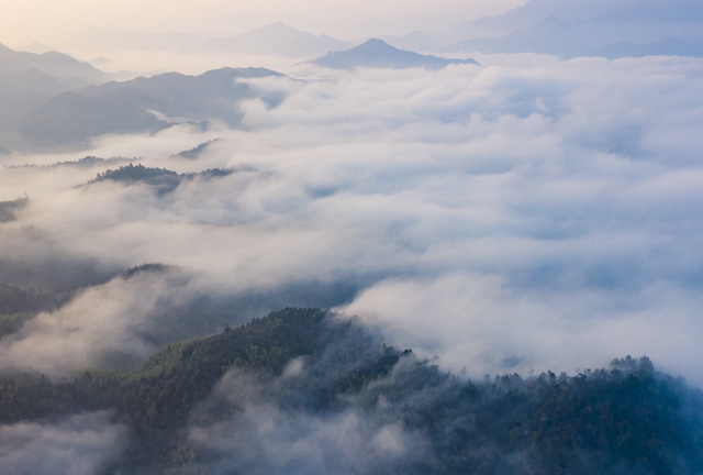 这是10月24日航拍的霍山县单龙寺镇扫帚河村秋景。