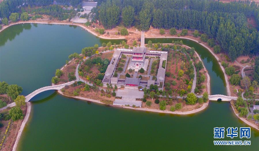 这是10月25日无人机拍摄的邯郸市临漳县邺城公园一角。 河北省邯郸市临漳县邺城公园原址是一片废弃坑塘。近年来,临漳县在充分保留坑塘原有地貌、水系等自然风貌的基础上,通过实施水系连通、微地形处理、艺术景观植入等措施,在废弃坑塘原址上建起了具有生态、景观与调蓄功能的公园,成为市民和游客休闲游玩的好去处。 新华社记者王晓摄