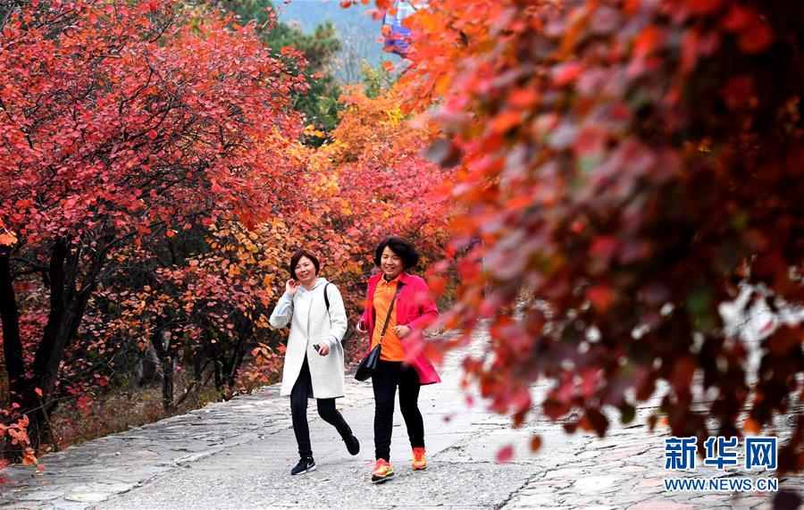 10月25日,游客在山路上观赏红叶。 金秋十月,北京西山八大处公园的山间、路边层林尽染,秋色正浓。 新华社记者李俊东摄