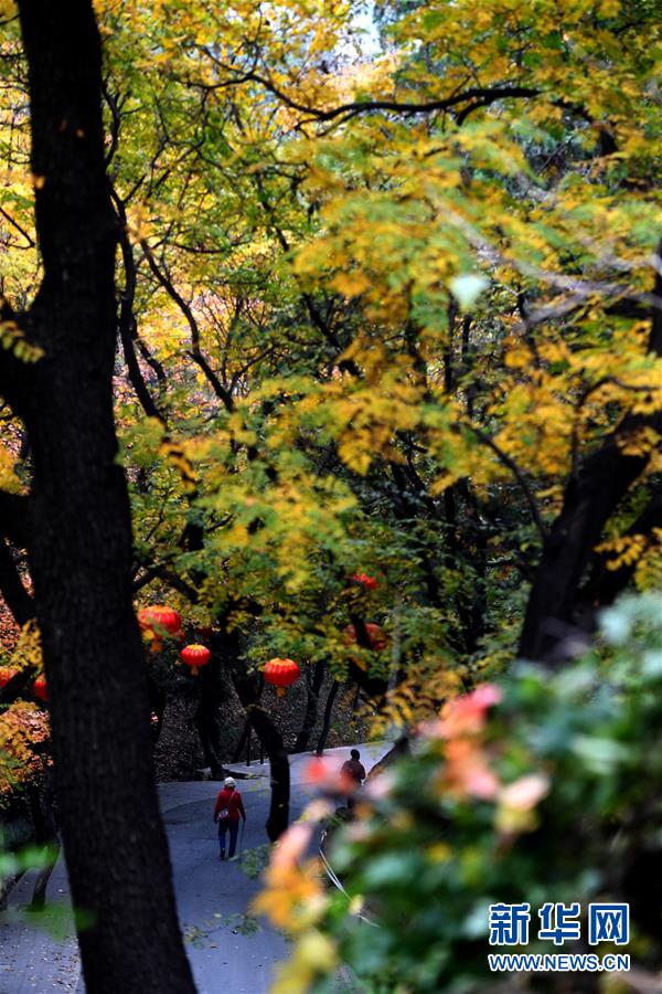 10月25日,游客在山路上游览秋景。 金秋十月,北京西山八大处公园的山间、路边层林尽染,秋色正浓。 新华社记者李俊东摄