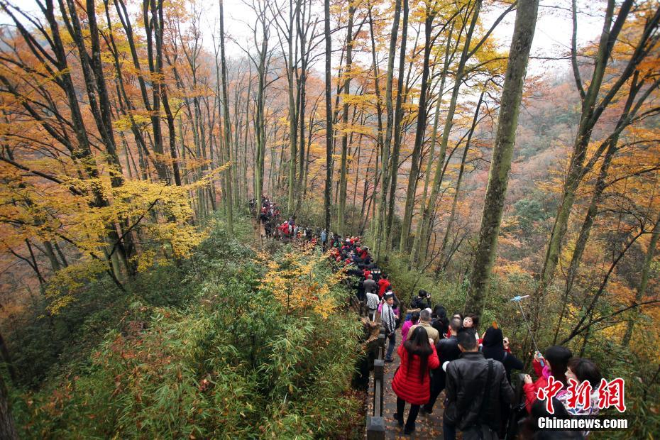 10月25日,四川光雾山的浓郁秋色吸引着八方游人前来赏景。中新社记者 王磊 摄