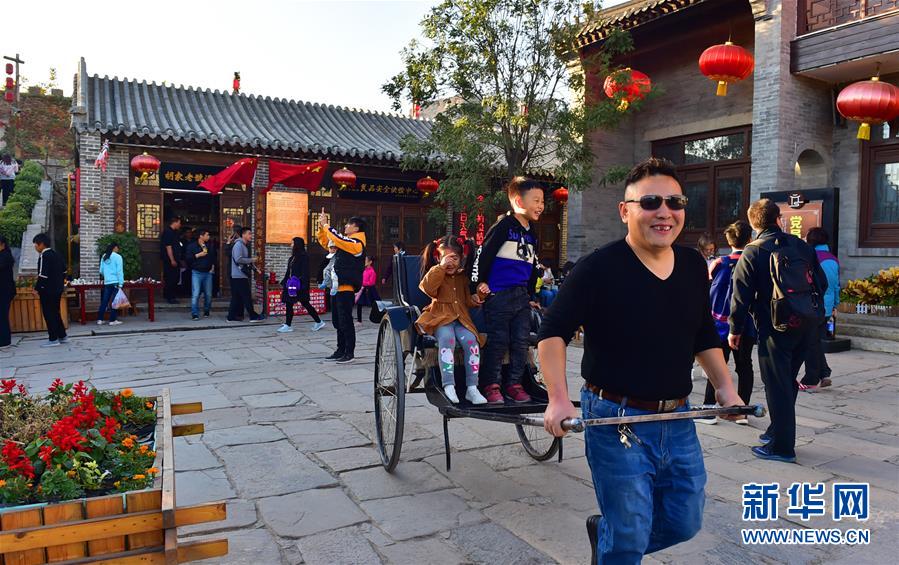 10月27日,游客在石家庄市鹿泉区土门关驿道小镇体验人力车。 新华社记者郑雅宁摄