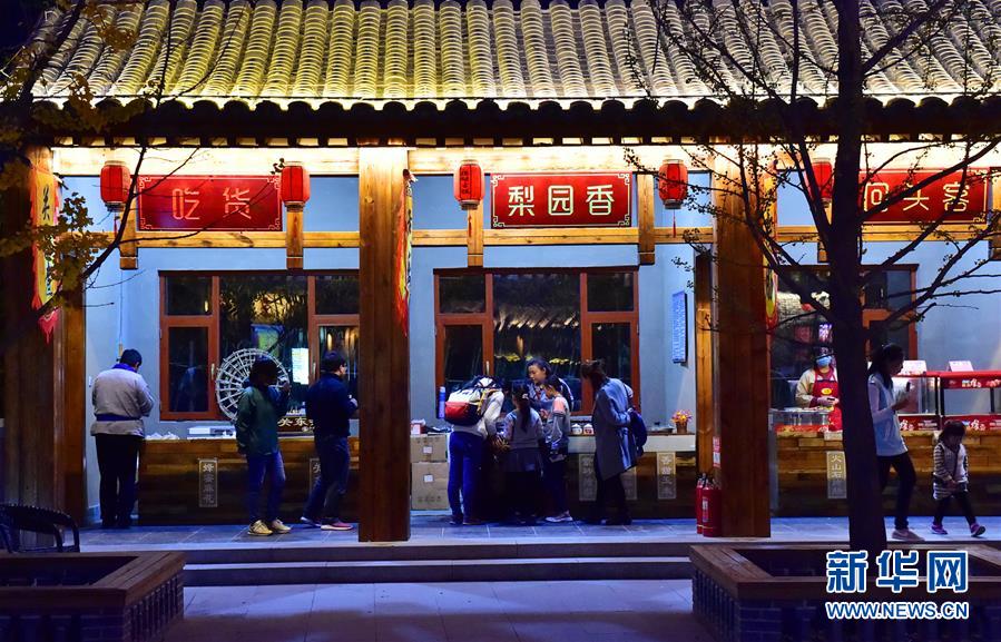 10月27日,游客在石家庄市鹿泉区德明古镇品尝美食。 新华社记者郑雅宁摄