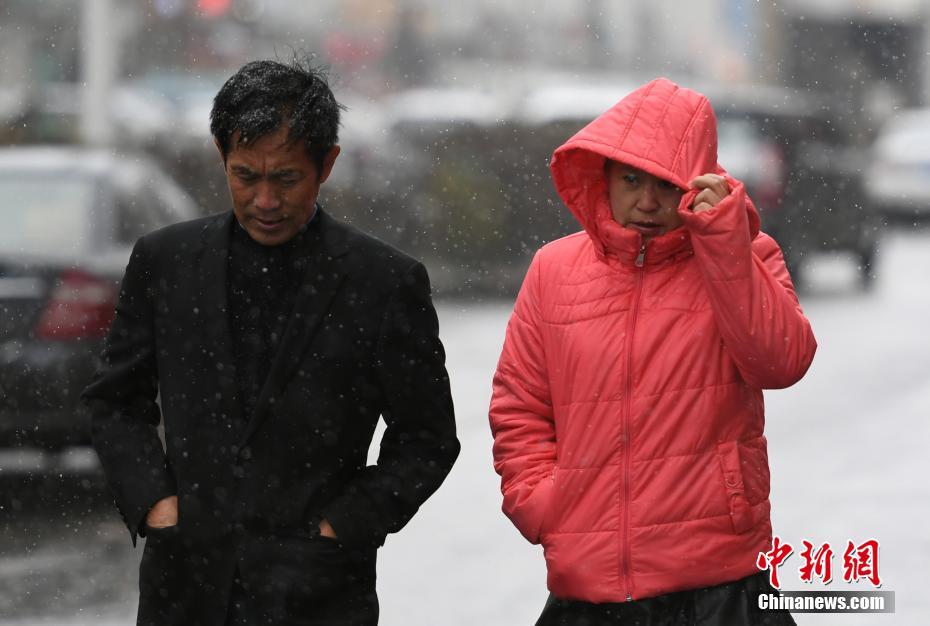 10月29日,长春市民在街头冒雪出行。当天,长春迎来一场降温降雪天气,让这个城市提前感受到“冬意”。中新社记者 张瑶 摄