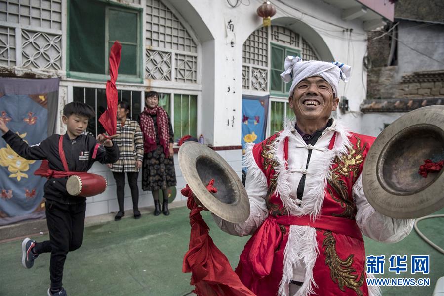 安塞区白坪街道办冯家营村贫困户周志福(前右)在自家庭院里为学腰鼓的孙子打镲(10月19日摄)。今年5月,本村的“千人腰鼓”表演村启动以来,原先在外打零工的周志福回到村里参与腰鼓表演活动,每月收入3000多元。 位于黄土高原腹地的陕西省延安市安塞区,是拥有“腰鼓之乡”“剪纸之乡”“绘画之乡”“民歌之乡”和“曲艺之乡”五张文化名片的县区,也是“国家级文化产业示范基地”和“中国民间文化艺术之乡”。 近年来,当地政府因势利导,按照“文化输出、旅游导入”和“文化养民、文化富民”思路,把文化旅游发展同文化旅游扶贫统筹推进。全区免费为贫困群众举办各类艺术培训班,让有劳动能力的贫困群众掌握文化技能,利用闲暇时间参加文化演出增加收入;依托当地演出公司和文化协会,组织全区文化艺术人才赴世界各地巡回演出,让文化走出去、游客走进来。 新华社记者陶明摄