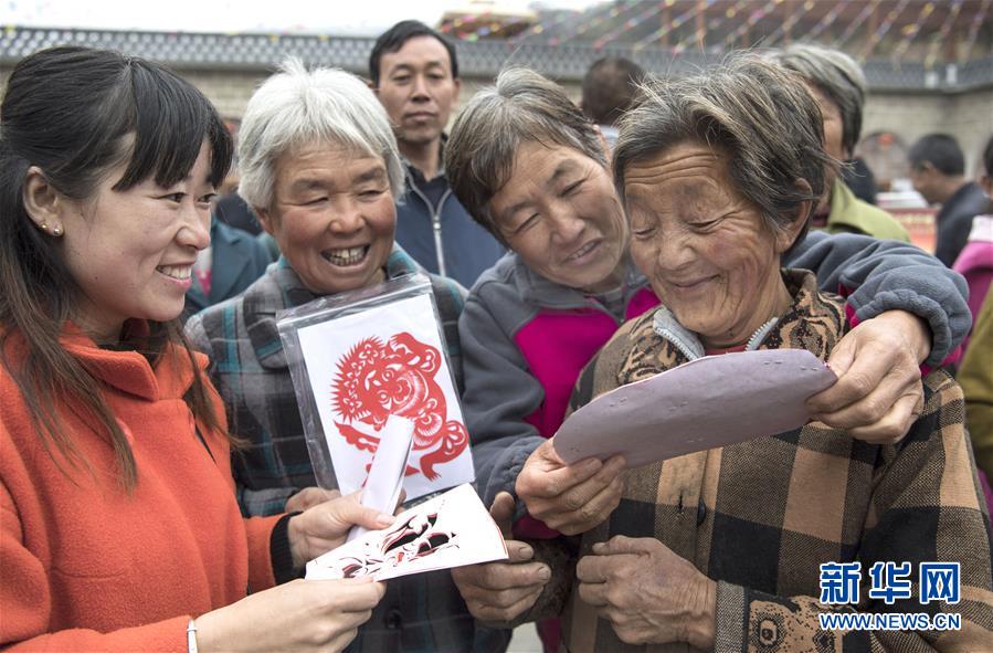 在安塞区高桥镇魏塔“东方毕加索”绘画村,来自化子坪镇的剪纸艺人王琴(左一)在与绘画村的老人交流剪纸技艺(10月20日摄)。 位于黄土高原腹地的陕西省延安市安塞区,是拥有“腰鼓之乡”“剪纸之乡”“绘画之乡”“民歌之乡”和“曲艺之乡”五张文化名片的县区,也是“国家级文化产业示范基地”和“中国民间文化艺术之乡”。 近年来,当地政府因势利导,按照“文化输出、旅游导入”和“文化养民、文化富民”思路,把文化旅游发展同文化旅游扶贫统筹推进。全区免费为贫困群众举办各类艺术培训班,让有劳动能力的贫困群众掌握文化技能,利用闲暇时间参加文化演出增加收入;依托当地演出公司和文化协会,组织全区文化艺术人才赴世界各地巡回演出,让文化走出去、游客走进来。 新华社记者陶明摄