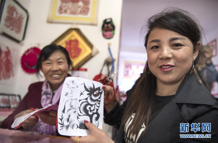 安塞区化子坪镇的王娅娅(右)和姚建珍在当地的就业扶贫社区工厂学习剪纸(10月19日摄)。 位于黄土高原腹地的陕西省延安市安塞区,是拥有“腰鼓之乡”“剪纸之乡”“绘画之乡”“民歌之乡”和“曲艺之乡”五张文化名片的县区,也是“国家级文化产业示范基地”和“中国民间文化艺术之乡”。 近年来,当地政府因势利导,按照“文化输出、旅游导入”和“文化养民、文化富民”思路,把文化旅游发展同文化旅游扶贫统筹推进。全区免费为贫困群众举办各类艺术培训班,让有劳动能力的贫困群众掌握文化技能,利用闲暇时间参加文化演出增加收入;依托当地演出公司和文化协会,组织全区文化艺术人才赴世界各地巡回演出,让文化走出去、游客走进来。 新华社记者刘潇摄