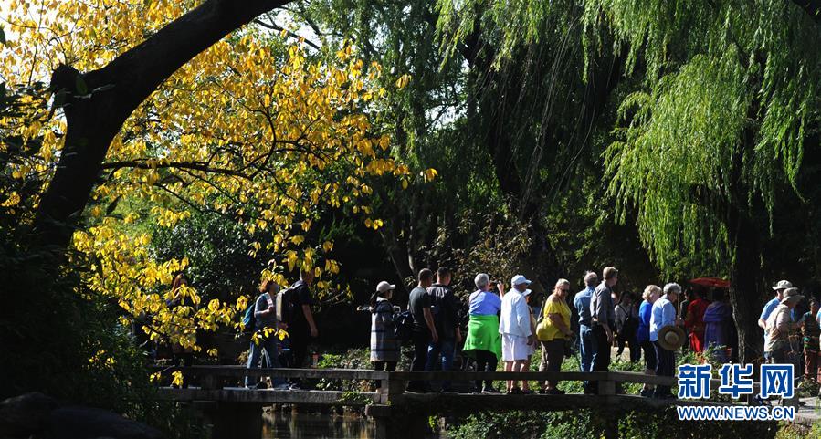 深秋时节,江苏苏州拙政园内色彩斑斓,景色如画。