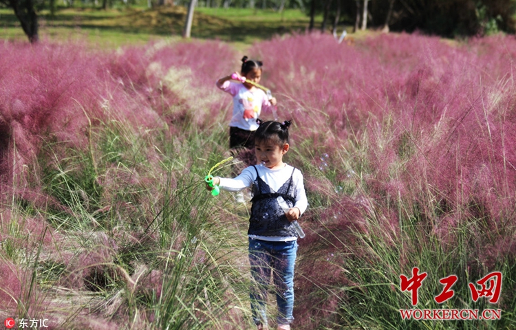 2018年10月29日,江西南昌市艾溪湖湿地公园内,一片占地约8余亩的粉色花海成了市民们赏景游玩的好去处,独特的粉红色更是令许多少女神往,不少游客纷纷来到花海中拍照留念。据了解,这种植物名为粉黛乱子草,因网友们的追捧,一夜爆红,被称为“网红草”。湿地公园的养护工人介绍,该处的粉黛乱子草是他们今年6月份种下的,9月就已经开始陆续开花,眼下正是盛开的时候,每到周末,这片粉色花海的人气值暴涨,十分热闹。(图片来源东方IC,请勿转载)