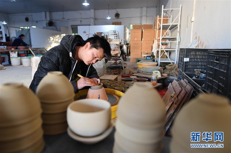 10月29日,建阳建盏制坯师傅在进行修坯程序。