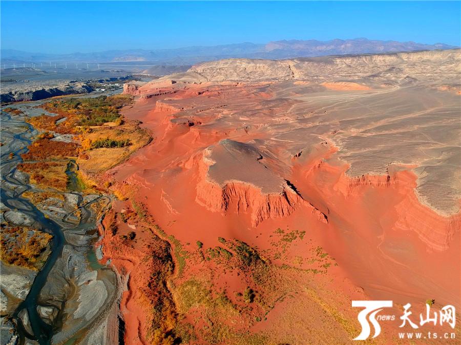 航拍托克逊天山红河谷宛如大自然水彩画