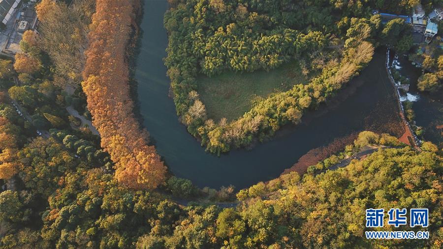 这是11月3日无人机拍摄的贵阳市花溪国家城市湿地公园黄金大道。 新华社记者 欧东衢 摄
