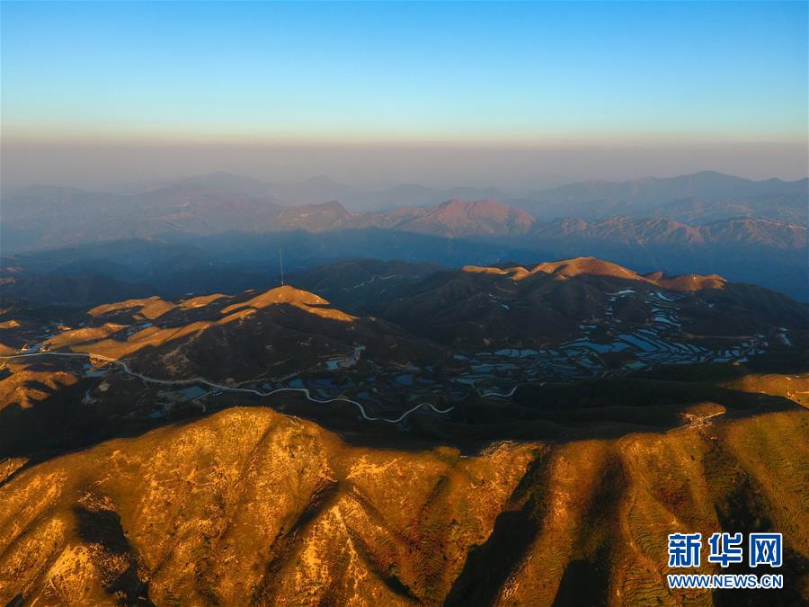 夕阳下的摩天岭草场(11月2日无人机拍摄)。 金秋时节,广西融水苗族自治县杆洞乡尧告村的摩天岭草场天高云淡,景色迷人。 新华社记者 周华摄