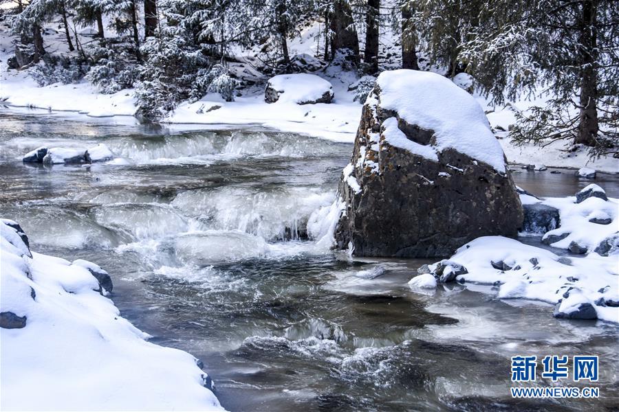 这是11月4日在乌鲁木齐市南山风景区内的西白杨沟拍摄的山间溪流。 深秋时节,乌鲁木齐市南部山区已是一片银装素裹。雪山、林海、村庄,在大地上组成美丽的生态图景,宛如一幅幅水墨画卷。 新华社记者 杜刚 摄