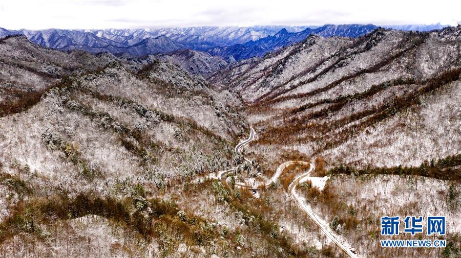 11月5日无人机拍摄的陕西省汉中市佛坪县凉风垭景区雪景。