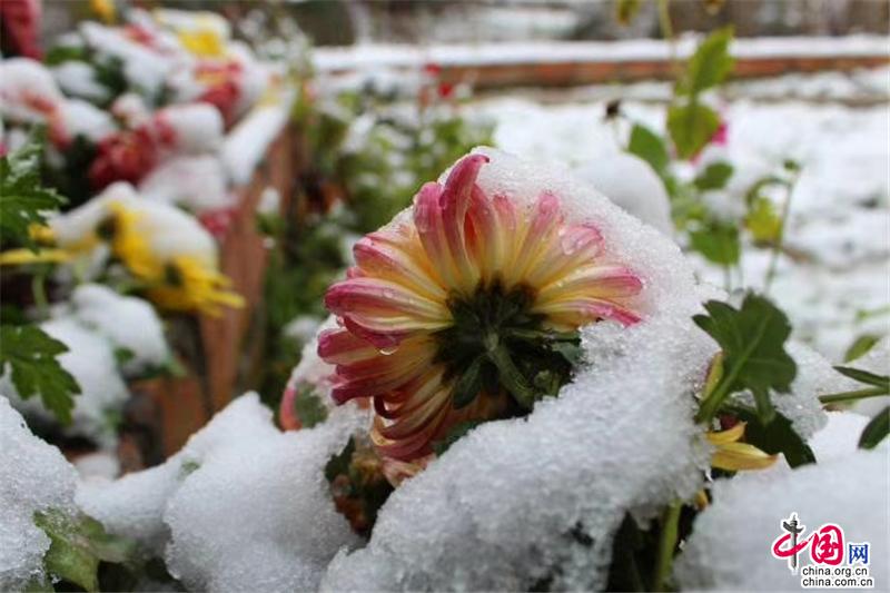 红叶与大雪齐飞 四川曾家山迎今冬第一场雪