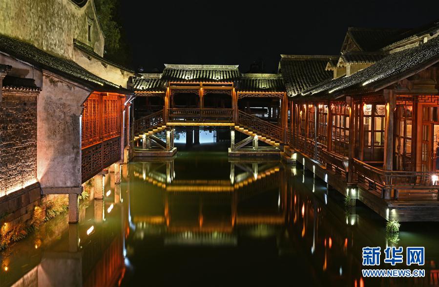 这是11月6日拍摄的乌镇夜景。 当日,浙江省桐乡市乌镇各项工作准备就绪,静待第五届世界互联网大会启幕。第五届世界互联网大会将于2018年11月7日至9日在乌镇举办。 新华社记者陈晔华摄