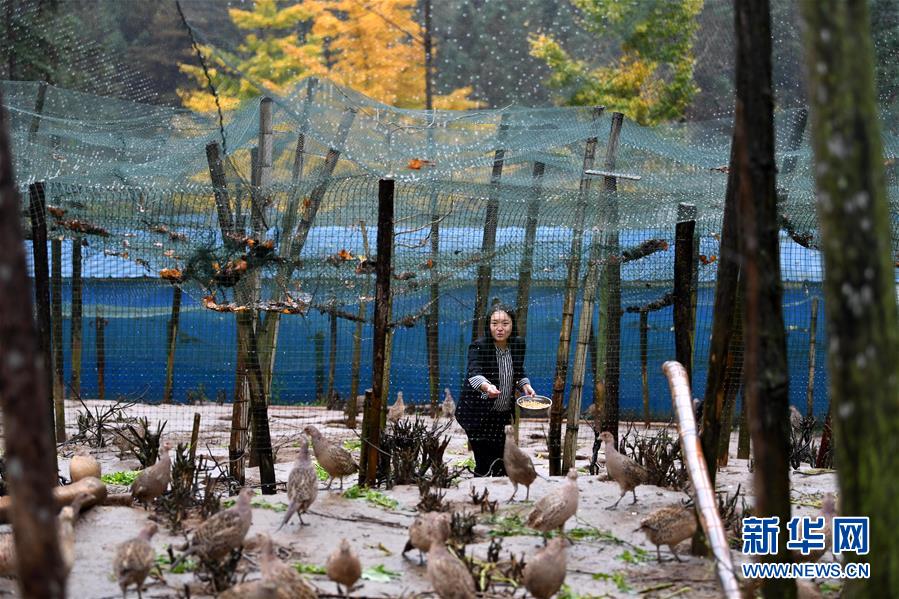 11月7日,余纯在岳西县田头乡的山鸡养殖场喂鸡。新华社记者刘军喜摄