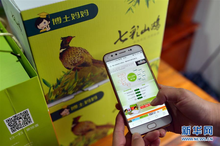 11月7日,余纯在岳西县田头乡的山鸡养殖场展示公司官网产品网页。新华社记者李任滋摄