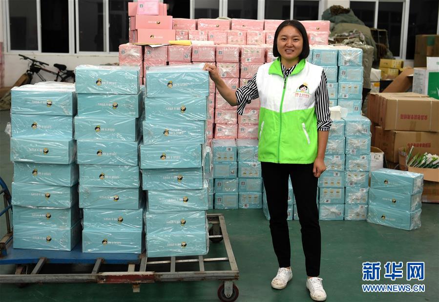 11月7日,余纯在岳西县电商产业园的仓库备货。 新华社记者张端摄