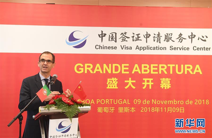 11月9日,葡萄牙外交部领事与葡侨总司签证事务司司长波西尼奥在里斯本中国签证申请服务中心开业仪式上讲话。