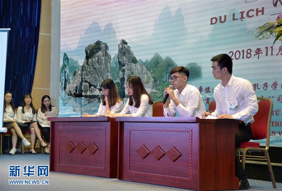 11月11日,在越南河内,参赛选手进行口译比赛。首届越南大学生汉越旅游口译大赛11日在越南首都河内举行,为越南高校中文专业学生提供了一个交流展示的平台。 新华社发(吴明进 摄)