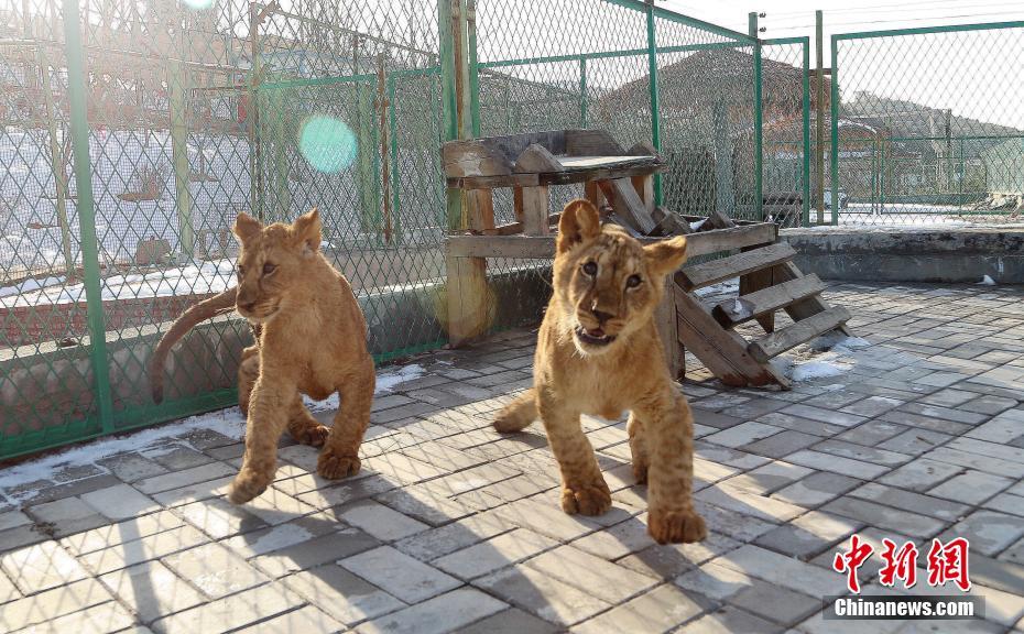 11月13日,西宁,小非洲狮追逐玩耍。近日,青藏高原野生动物园对外表示,该园繁育成活三只非洲狮。据了解,三只非洲狮宝分别出生于2018年5月9日和5月15日,均为雌性,其中一对为双胞胎,目前三只“狮宝”已能自行捕食,体重均达到20公斤左右。此次是该物种在青藏高原诞生并育活的最好“成绩”,就目前观察情况来看,此物种已适应青藏高原气候。 中新社记者 马铭言 摄
