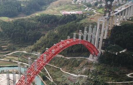 世界最大跨径上承式钢管混凝土拱桥立柱安装完成