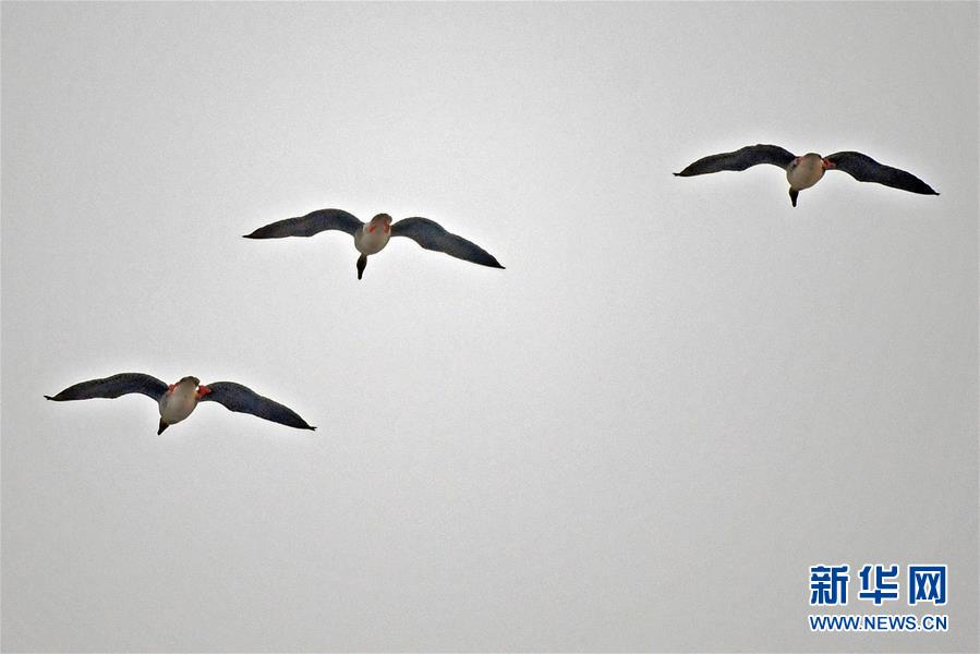 11月14日,候鸟在卧龙湖湿地上空飞翔。 新华社记者 杨青 摄