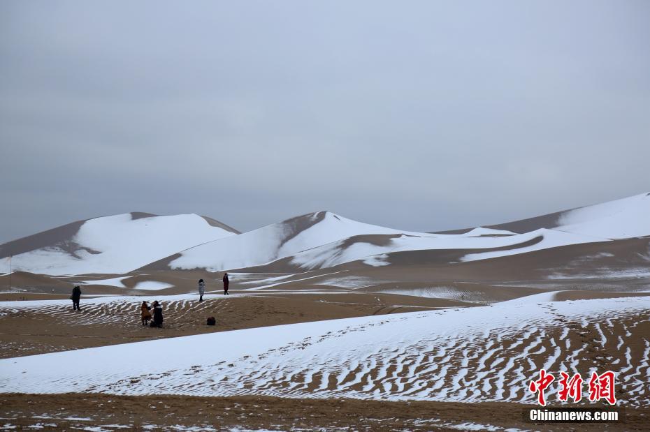 敦煌大漠降雪“素颜”迎客 沙雪交融如诗如画