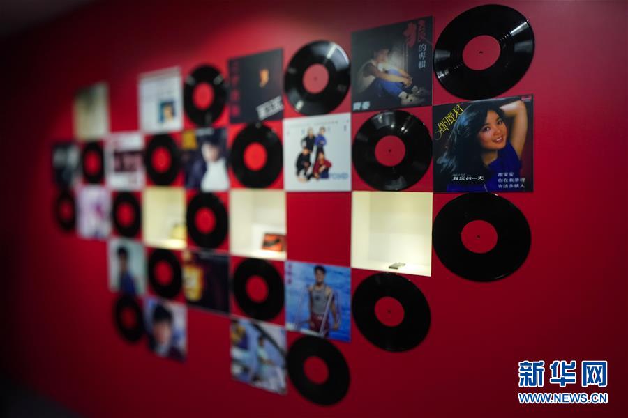 在“历史巨变”展区拍摄的怀旧黑胶唱片墙(11月15日摄)。