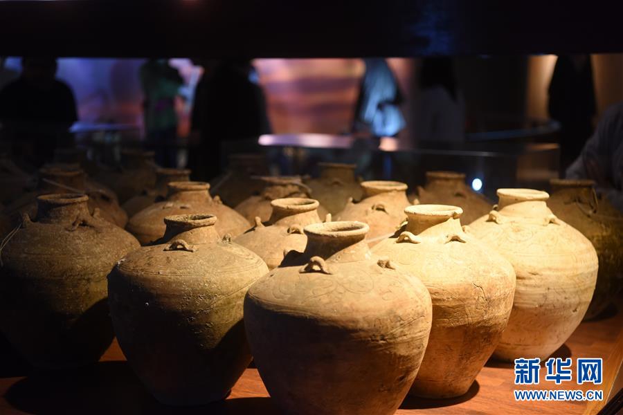 这是11月16日在文莱首都斯里巴加湾市的海事博物馆拍摄的陶罐。