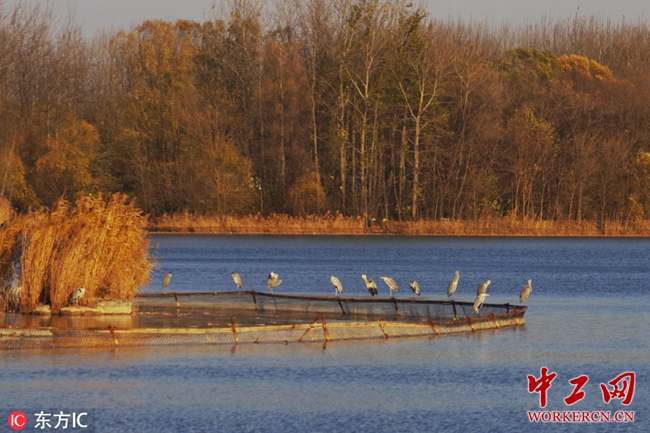 2018年11月21日,北京初冬奥林匹克公园飞来苍鹭,有的盘旋,有的在草丛中休息,成群的苍鹭飞起很是壮观。(本组图片来源东方IC,请勿转载)