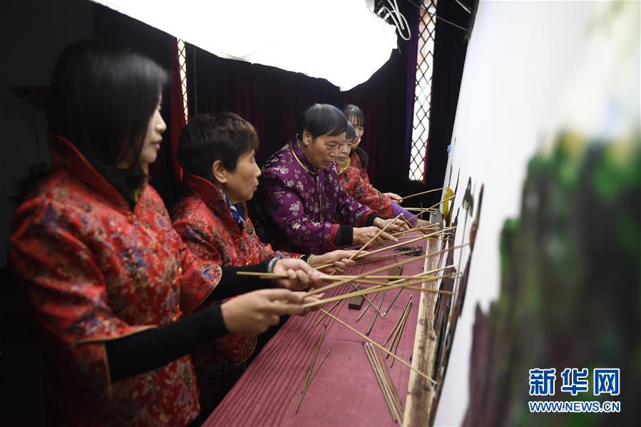 11月20日,在浙江海宁市南关厢历史街区,张坤荣(左三)在表演皮影戏。 新华社记者 黄宗治 摄