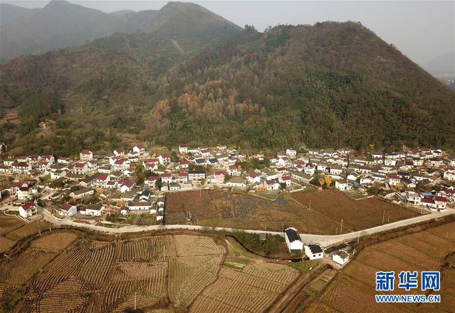 这是山脚下的宝峰村(11月22日无人机拍摄)。