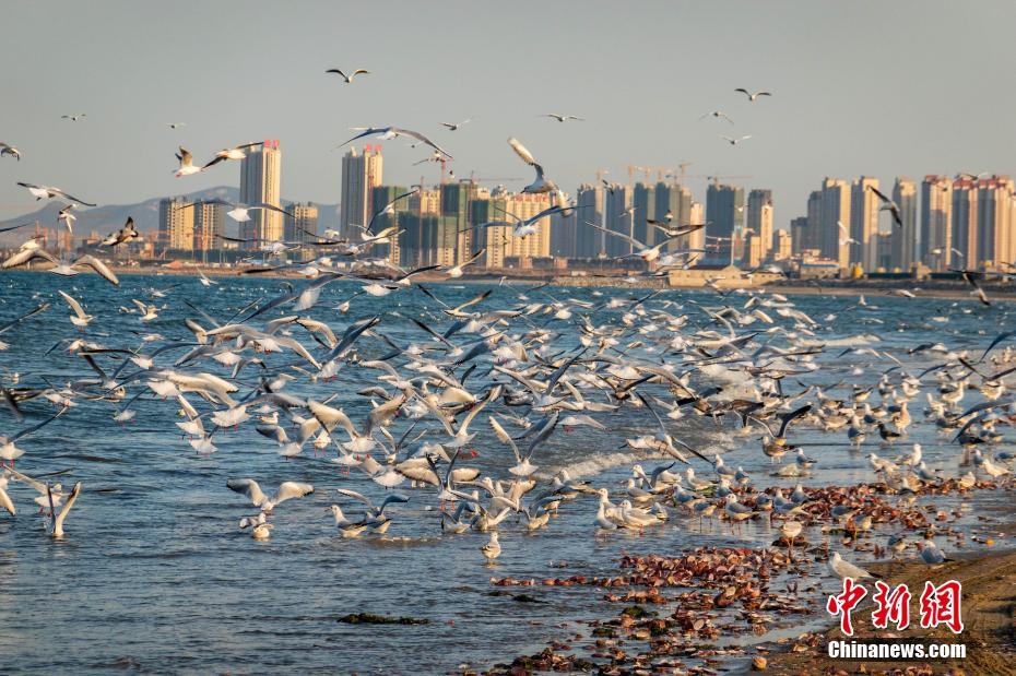 每年十一月,是烟台东海岸一带扇贝收获的时节,也成为海鸥家族最快乐的“饱餐季”。海滩上铺满了扇贝加工后剩下的扇贝壳和扇贝边,数以万计的海鸥前来争食,场面震撼。 邹刚 摄